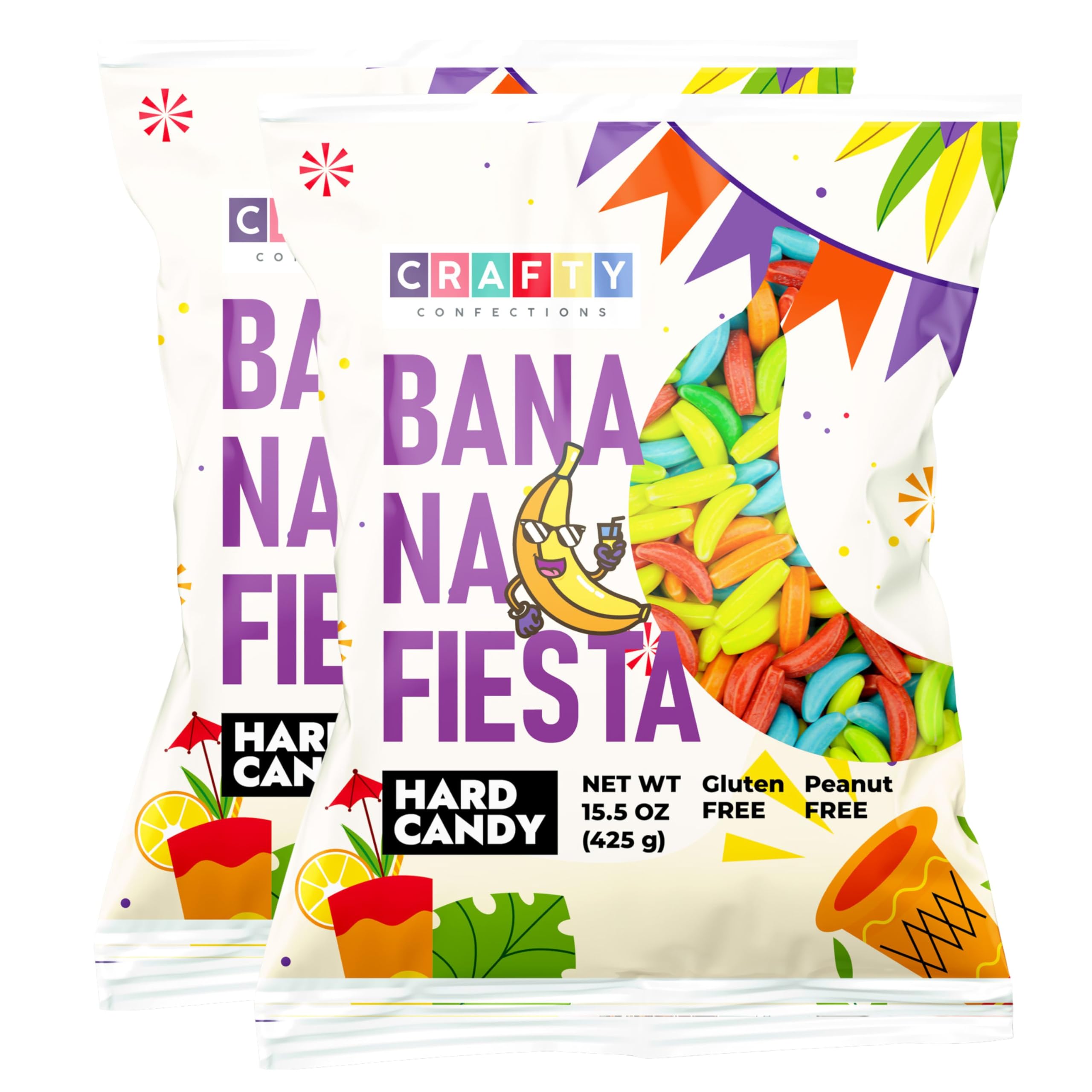Experience the delightful taste of Banana Fiesta with our vibrant assortment of banana-flavored hard candies. Each pack contains 700 pieces of colorful banana runts, making it a total of 15 OZ (425 g) of pure enjoyment per pack, and you're getting two packs. These candies are a feast for the senses, featuring a stunning range of colors: yellow, green, blue, red, purple, and pink, each delivering the classic banana aroma loved by all. They are perfect for elevating any party with their versatile use as banana party decorations, pinata fillers, candy bag treats, or as charming cake and cupcake toppers. Crafted from high-quality ingredients, these candies are peanut-free and gluten-free, ensuring a safe treat for everyone. They're ideal for filling vending machines, or simply for enjoying a sweet and refreshing moment on-the-go. Capture the essence of nostalgia with these American classics and create new joyful memories with Banana Fiesta that both kids and adults will cherish.