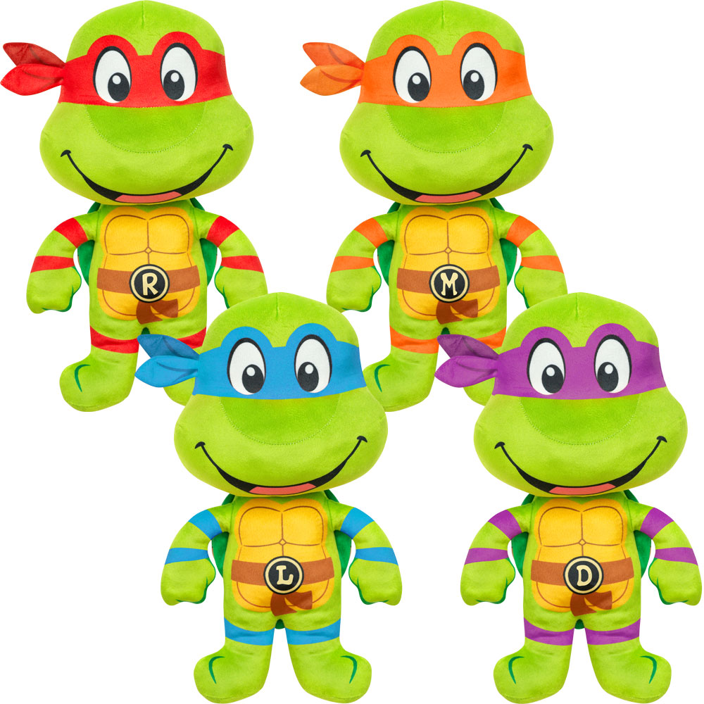 Bring home the fun with this tmnt plush featuring leonardo, raphael, michelangelo and donatello. Perfect for fans, this ninja turtle toy adds excitement to any collection, game or bedroom. The soft design is ideal for play and display, making it a gift for kids and collectors. Enjoy adventures with your favorite turtles and relive memories from the classic franchise. Material: plush. Height: 14in. Characters: leonardo, raphael, michelangelo, donatello. Quantity: 1.