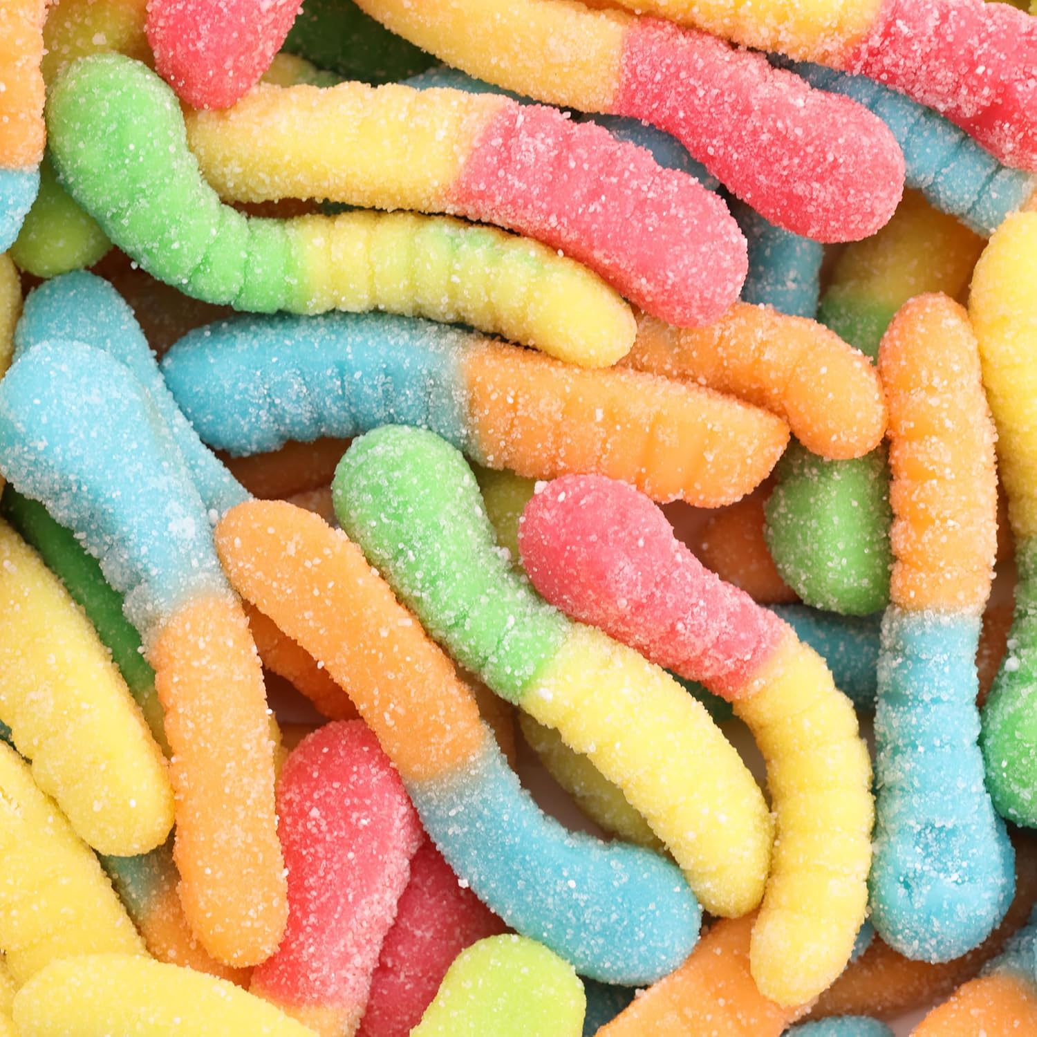 Pucker up for a sour take on our sweet Gummi Worms. Each Sour Mini Neon Gummi Worm is dusted with a sour coating giving it a tart bite.