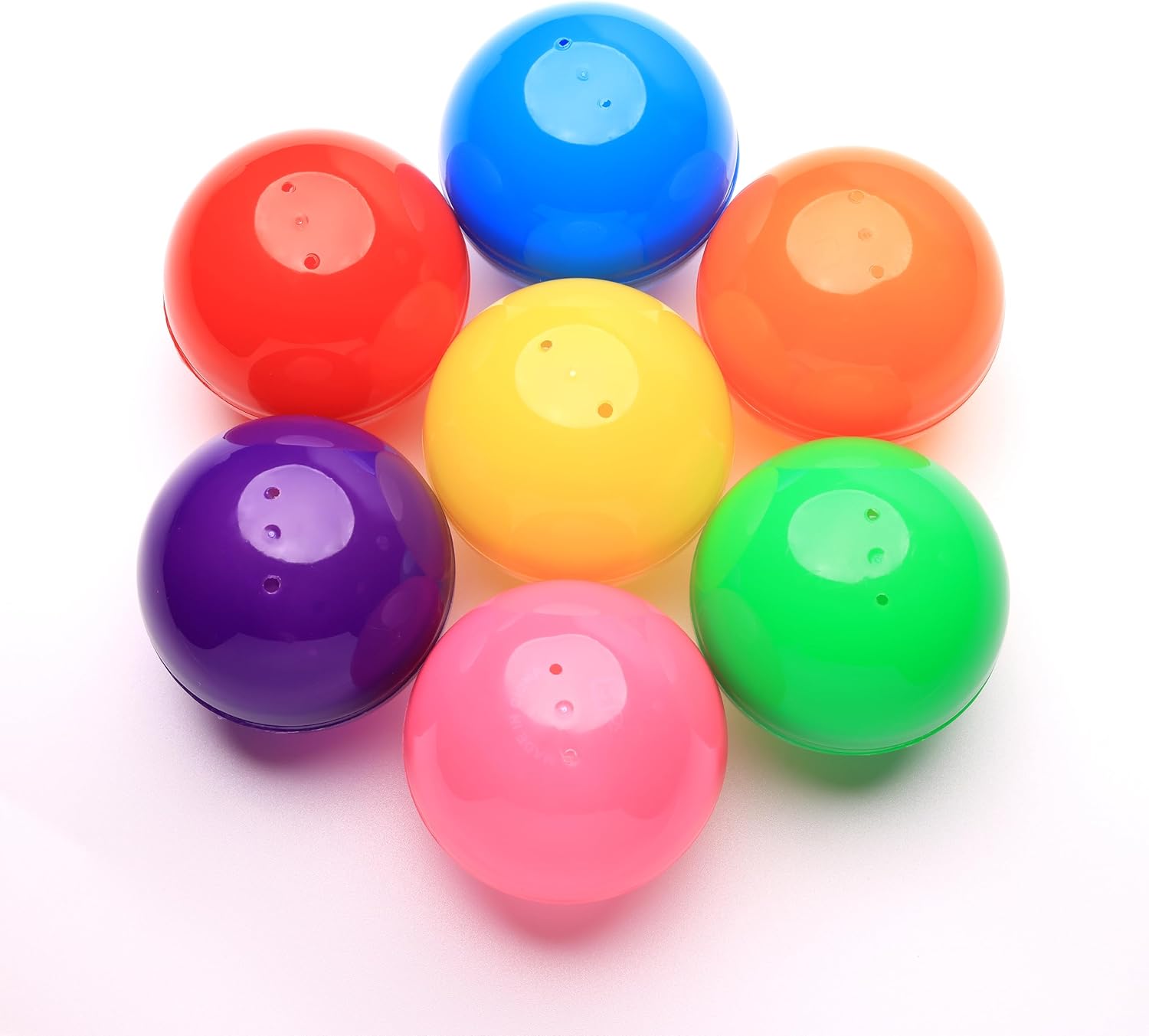 The Big gumballs machine Capsules come in bulk of 56 gumball machine capsules of 7 different colors with 1 capsules of each color: Yellow, Orange, Pink, Red, Green, Light Blue and Purple. With these color -coded capsuled storage containers you can store and then easily find everything you need. Such big capsules are perfect as storage container for any parts and screws - you can find the right capsule by color. These vending machine capsules are also great for rewards, treasure hunts, surprise contests with toys and candy prizes at birthday parties, Halloween or Valentines Day – both halves are the same color, so you never know what`s inside!