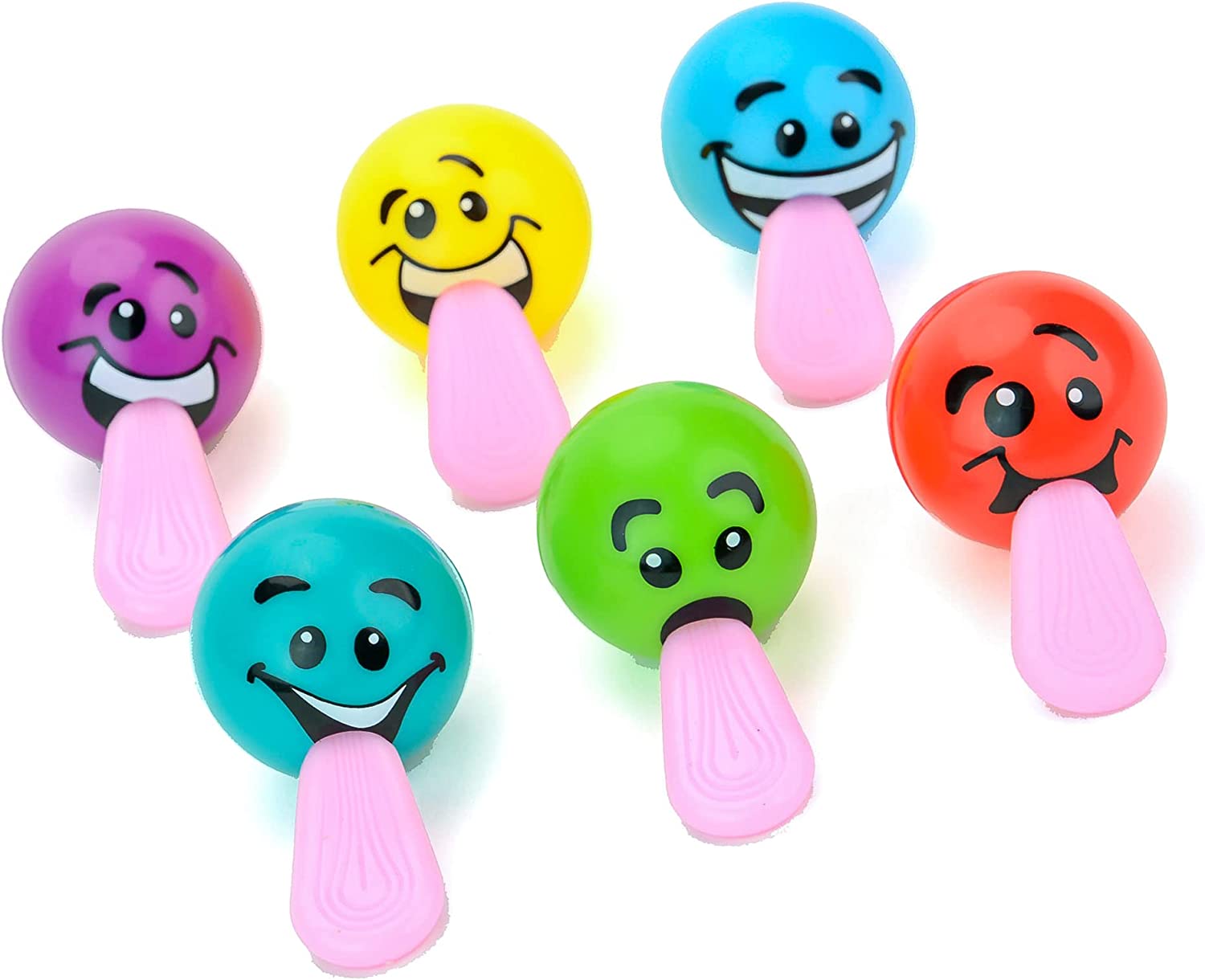 Emoji foam balls package includes 50 pcs. Size 1.25 inch (32 mm)..There are funny face squeeze balls with stretch tongue. These fascinating face ball squishy will please any child.That make you laugh - pull back that funny tongue and look at that silly face!This elastic tongue will allow you to stretch and release this emoji feelings balls to catch it! Children will definitely like this silly face and funny tongue.This emoji party balls will bring a lot of fun and joy!Suitable for any children's event - as gift for birthday, as bulk emoji stress balls treasure chest toys, or tremendous pinata filler, and as prizes for kids classroom. No one will be disappointed! These stress relief squeeze balls is a brilliant solution to create an atmosphere of fun at your event.