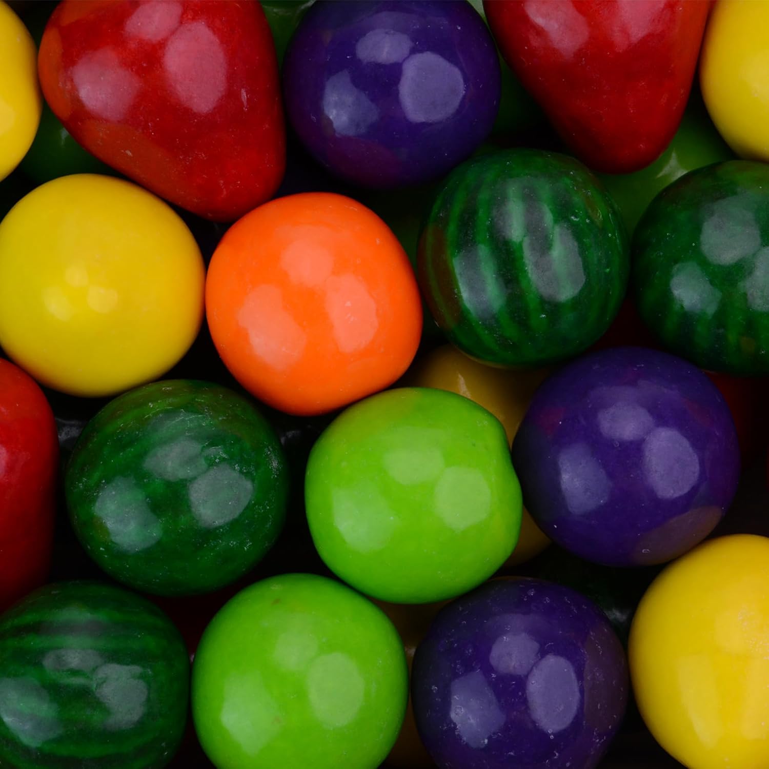 Fancy Fruit Gumballs - Fruit shaped bright colored gumballs with rich tropical shades will blast your tongue with sweet and sour flavor.