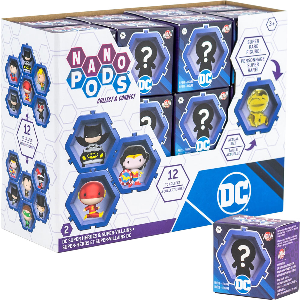 Explore the world of dc universe with these collectible figures locked in mini display pods. Each pod features a character from a range of superheroes and villains, ideal for fans building a toy collection. Create display arrangements on shelves or walls using the tongue and groove nano pod system for easy connection. Mix and match to customize your own character layout and show your fandom in style. A great item for comic book figure collectors and dc fan gift seekers.