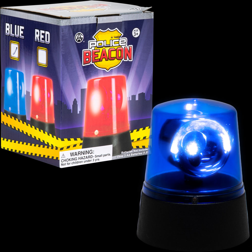Bring action to your space with this police beacon light, designed to mimic a real siren. Great for parties, playrooms, or themed events, it features a rotating and flashing light. Easy to use, simply turn it on to light up any room with energy and fun. Perfect for pretend play or as an event accessory. A great addition for kids and fans of emergency themes alike. Battery operated for convenience anywhere you need a dynamic light effect.