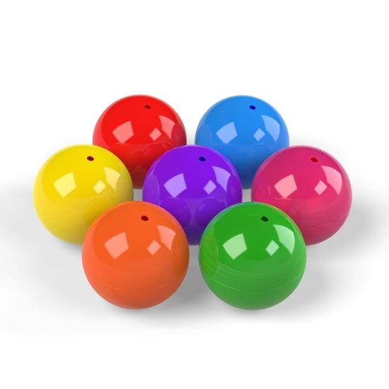 The Big gumballs machine Capsules come in bulk of 14 gumball machine capsules of 7 different colors with 1 capsules of each color: Yellow, Orange, Pink, Red, Green, Light Blue and Purple. With these color -coded capsuled storage containers you can store and then easily find everything you need. Such big capsules are perfect as storage container for any parts and screws - you can find the right capsule by color. These vending machine capsules are also great for rewards, treasure hunts, surprise contests with toys and candy prizes at birthday parties, Halloween or Valentines Day – both halves are the same color, so you never know what`s inside!