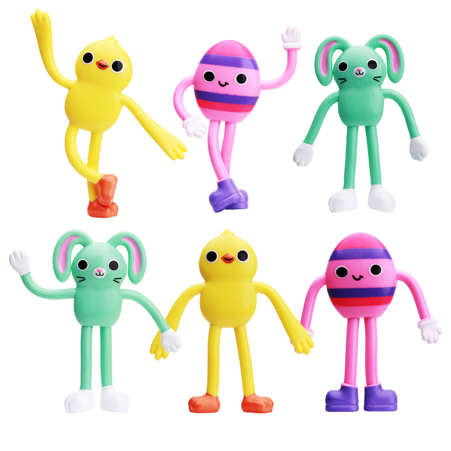 Introducing our Easter basket stuffers for boys and girls, the perfect kids Easter gifts! This versatile set offers endless possibilities for Easter party favors, basket stuffers, teacher treats, and more. Whether used as Easter Goodies, Pinata Fillers, or School Easter classroom gifts, these toys are guaranteed to bring smiles all around! Encourage imaginative play and creativity with these bendable Easter egg fillers for kids. Not only do they provide entertainment, but they also stimulate cognitive and motor skills development in a fun and interactive way. Standing at 4.5” tall, these Easter basket stuffers for toddlers are compact enough to fit in large Easter eggs or serve as Easter party favors and Easter Classroom Prizes. They're an excellent choice for any occasion, including Easter celebration activities like Easter egg hunts. Keep boredom and anxiety at bay with these sensory toy figures. Their bendable limbs twist in multiple directions, providing soothing tactile feedback and endless entertainment for kids. Crafted from durable, high-quality plastic that meets US toy standards, our Easter egg stuffers for kids come in bright colors and cute designs. They're built to last, ensuring hours of enjoyment for children. With six charming toddler Easter basket stuffers in bright colors, including Easter eggs, bunnies, and chickens, this set offers a delightful assortment to enhance any Easter celebration. Perfect for filling Easter baskets or adding a dash of charm to your Easter decorations.